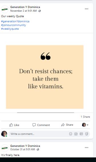 Generation Y Dominica’s online community is designed to foster togetherness, educate, inspire and promote the progress of our generation